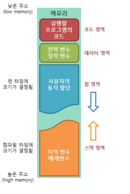 또한 프로그램에서 사용되는 병수들을 저장할 떄 메모리도 필요하다.